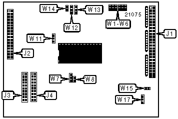 Note: The OMTI 3520A and OMTI 3527A controllers are connected to the host system via the SCSI bus (connector J1). Up to seven SCSI devices may be connected to this bus and an OMTI 3520A/3527A controller is considered to be one of these devices. Multliple controllers may be attached, with each controller assigned a unique SCSI ID using jumpers W1, W2 and W3. |
