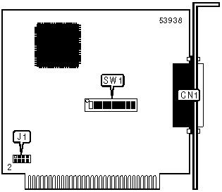 Note: A total of 32 base address settings are available. The switches are a binary representation of the decimal memory addresses. SW1/5 is the Most Significant Bit and switch SW1/1 is the Least Significant Bit. The switches have the following decimal values: SW1/5=262144, SW1/4=131072, SW3/10=65536, SW1/2=32768, SW1/1=16384. Turn off the switches and add the values of the switches to 540671 and convert to hexadecimal to obtain the correct memory address. (Off=1, On=0)