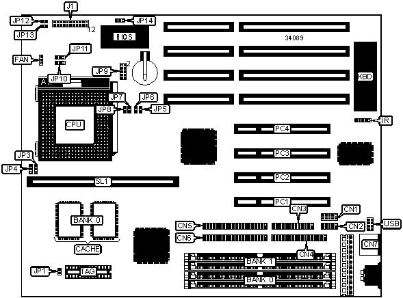 Note: Board accepts EDO memory. Banks are interchangeable.