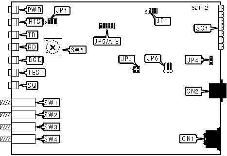 Note: Modem can be made to perform self-test by holding down SW2 and SW4. The DCD, TEST, and SQ LEDs should go on, and the RD LED should go off. | ||||||
